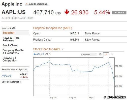 لم تستطع شركة أبل الامريكية ان تكرر نجاحات العام الماضي في هذ العام، فحتى بعد كشفها عن نسختين جديدتين من هاتفها الذكي "5 iPhone" بدأت اسعار اسهمها المالية في البورصات بالتراجع. وفي اليوم الاول تراجع سعر سهم الشركة بنسبة 2.28 ..
