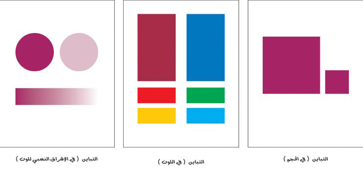 التباين هو وسية من وسائل التوضيح فلكي تجعل الورقة البيضاء اكثر بياضا عليك ان ترسم عليها بالقلم الاسود او ان تضع عليها لونا فاقعا بين الوان باهته