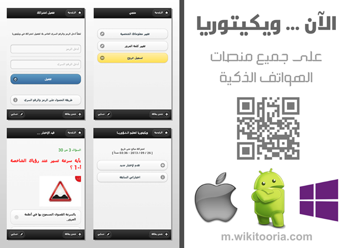 شاشات منصة الهواتف الذكية لموقع ويكيتوريا