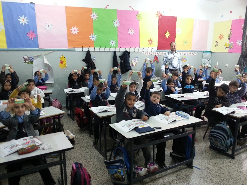 توزيع بطاقات رياضيات مجانية لطلاب مدارس الاقصى